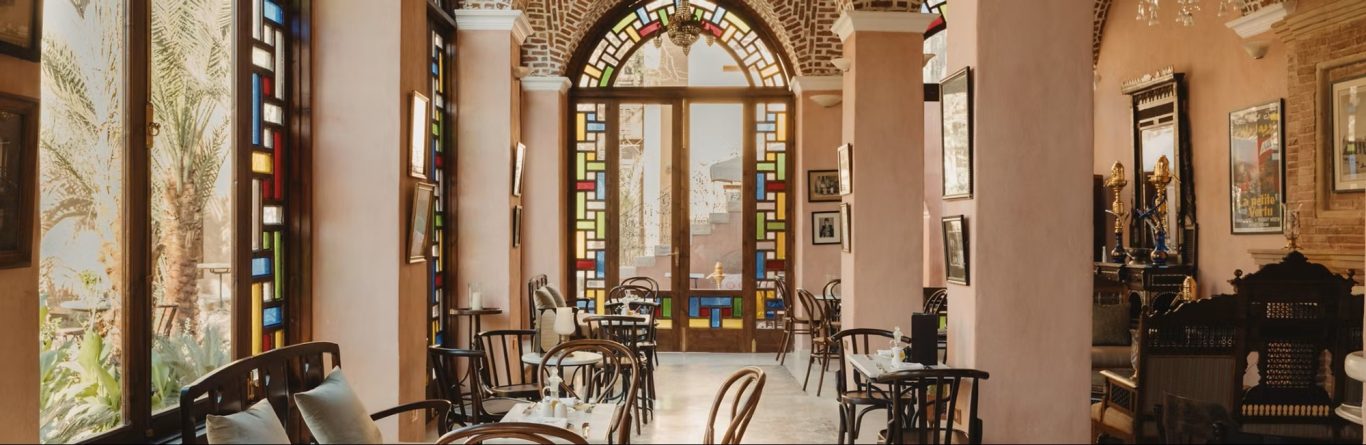 Khan Al Moudira: The recently opened Khan Al Moudira is our traditional Egyptian restaurant and café, beautifully furnished with antiques and pieces from the coffee houses of Cairo’s old colonial times, with original pictures illustrating Egyptian society a century ago. Khan Al Moudira overlooks a courtyard with an antique Ottoman marble fountain made from a single block of marble and it is surrounded by some of the most beautifully curated shops in Egypt, full of antiques that may find their way into the rooms and suites of Moudira.