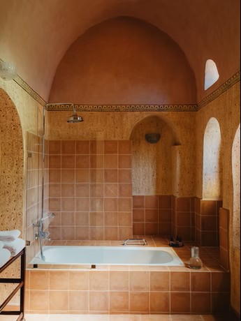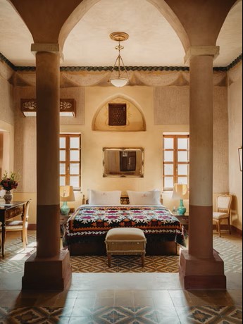 The hotel’s fifty-four suites are grouped around a series of private courtyards soothed by lush greenery and cooling fountains. The suites, apartments, and villas are all strikingly different but share uncompromised common features: all are very spacious, have high domed ceilings, hand-painted frescoes, well-appointed airy bathrooms, antique furnishings and king-size luxury beds dressed with the finest Egyptian cotton linen.