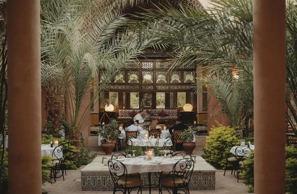 The Courtyard: This peaceful, shaded courtyard leading off the reception area is situated at the heart of Al Moudira, next to the beautiful traditional bar. It is an informal outdoor living room where you can enjoy breakfast, coffee, lunch, an apéritif, or a casual dinner. Here, guests can relax and read, or simply lounge in the shade while the birds play around the bougainvillaea.