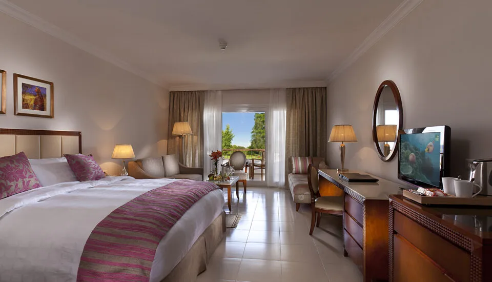 The Baron Palace Sahl Hasheesh Hotel is a five-star luxury beachfront resort located along the sparkling shores of the Red Sea in Hurghada’s prestigious Sahl Hasheesh Bay. Blending elegant architecture with lush landscaped gardens and sweeping sea views, the hotel is designed to provide an atmosphere of refined relaxation. Guests are welcomed into a world of opulent interiors, attentive service, and a tranquil setting. The hotel’s grand lobby, palatial design, and direct beach access create an inviting oasis for guests seeking exclusivity and comfort.