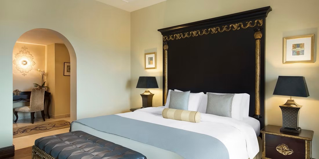 The 420 rooms are beautifully decorated with both dark wood furnishings and soothing desert tones. Views from the balcony can be of either the sea, pool or mountains.