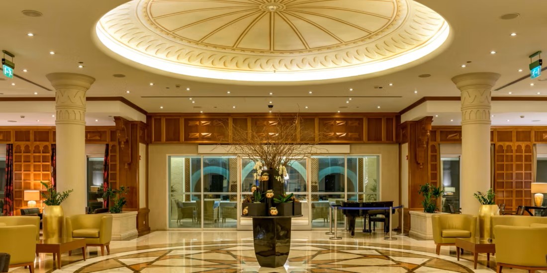 The stylish Rabbel Lobby Lounge dishes up fresh regional and international cuisine throughout the day, and is open around the clock for snacks and drinks. The decor is a cosmopolitan blend of Oriental touches and art deco chic. The enclosed terrace has stunning views over the pool.