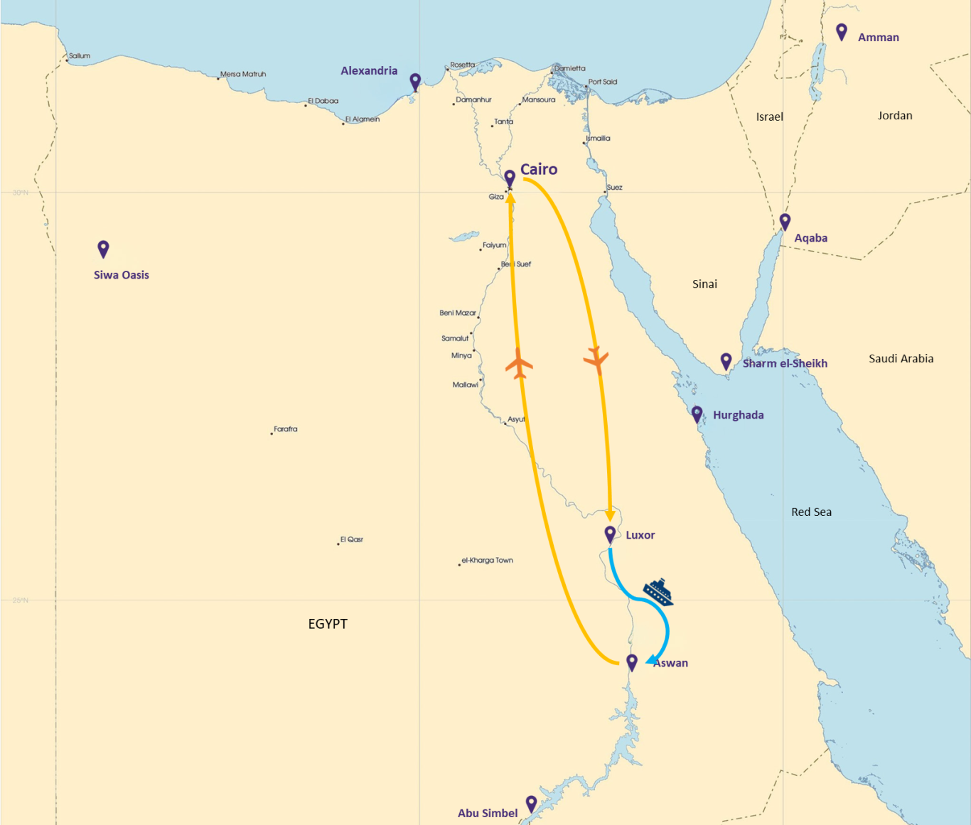 Upon arrival in Cairo, you are met at the airport by our representative who will assist you through immigration and customs (including help with your visa if required) and driven to your hotel by private transfer. You will then have the rest of the evening to relax and settle into your hotel.