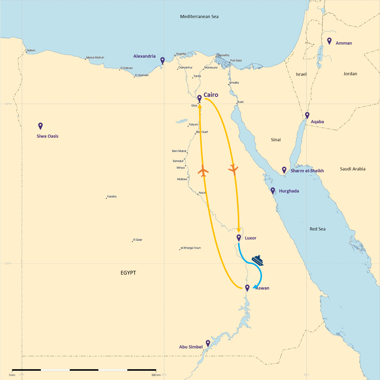 Upon arrival in Cairo, you are met at the airport by our representative who will assist you through immigration and customs (including help with your visa if required) and driven to your hotel by private transfer. You will then have the rest of the evening to relax and settle into your hotel.