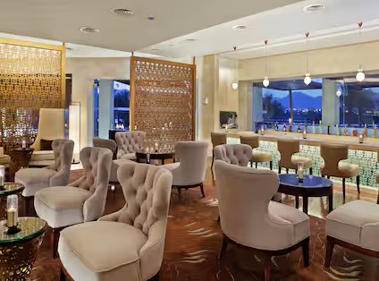 Explore the authentic Shisha café, spa tea bar, poolside bar, and Sunset Lounge & Terrace for live entertainment. Olives restaurant offers Mediterranean cuisine, Silk Road serves an array of Asian specialties, and Rosetta exhibits Rosetta Stone-inspired décor.