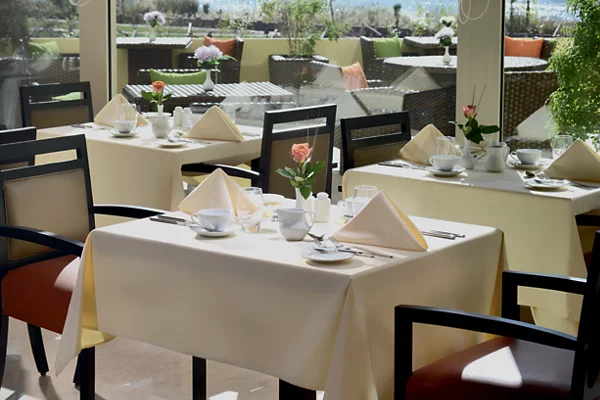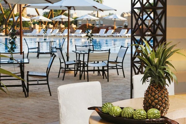 The hotel offers four restaurants, including the wonderful Nubian-style ‘Orangerie’, a panoramic lounge bar, infinity-edged swimming pool, and a small fitness room and spa.