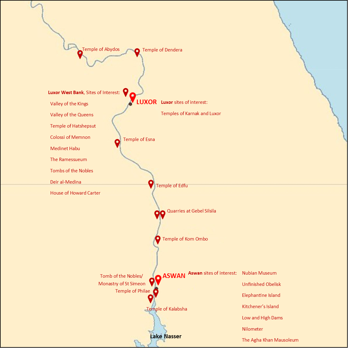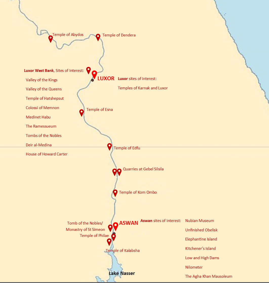 Sample Nile Cruise and Lake Nasser Itineraries:
