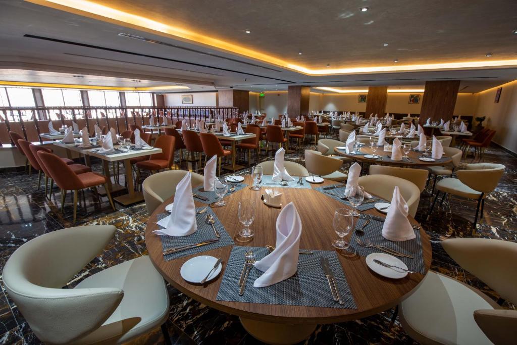 - Deluxe Rooms (34 Sq Meters): The hotel’s elegantly appointed rooms feature plush bedding, tasteful décor, air conditioning, smart lighting system, black out curtains, tea and coffee aminities, high quality linen and toiletries. daily housekeeping service and extra on demand.