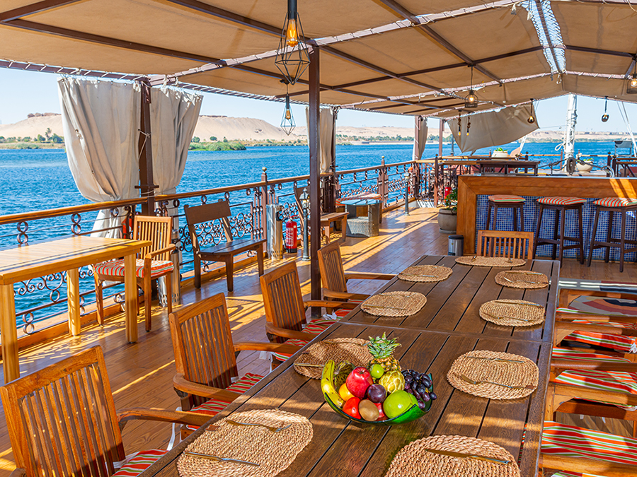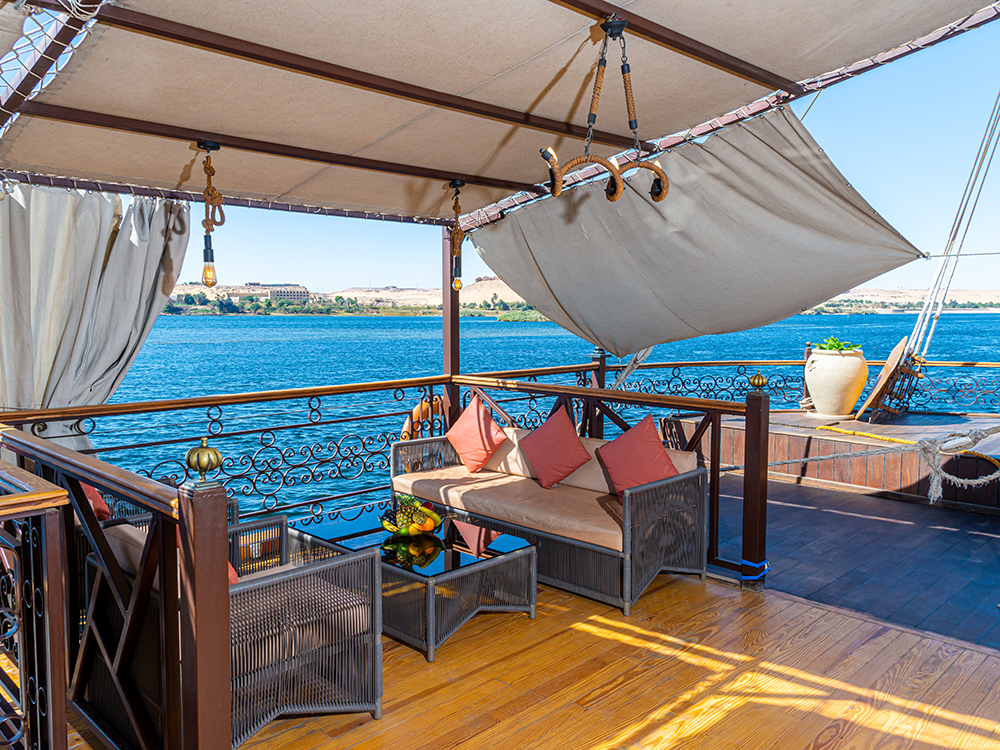 Sonesta Dahabeya Amirat features 5 Deluxe Cabins and 2 Elegant Suites with private terrace, and is designed to offer maximum luxury, comfort and privacy.