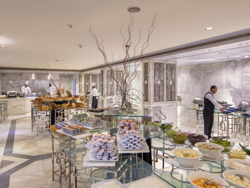 The main dining room features natural light and views of the Nile River and pool, serving buffet breakfast, lunch and theme dinners featuring Continental, International, Japanese and Egyptian cuisine.