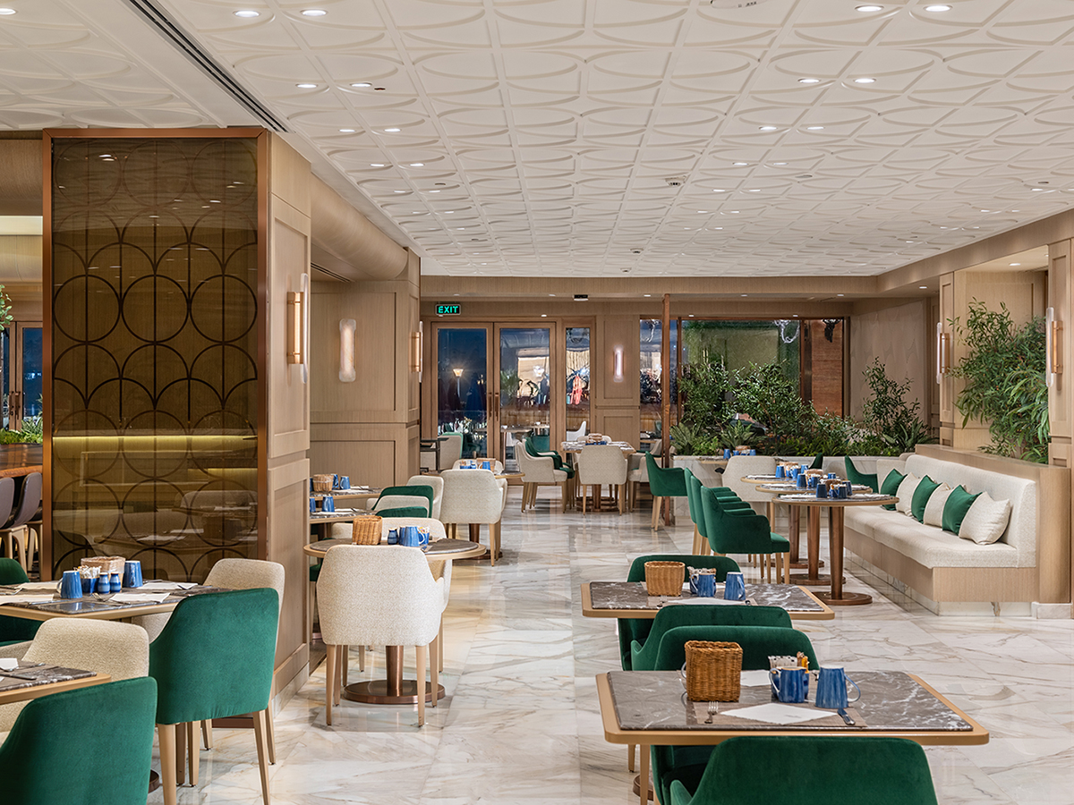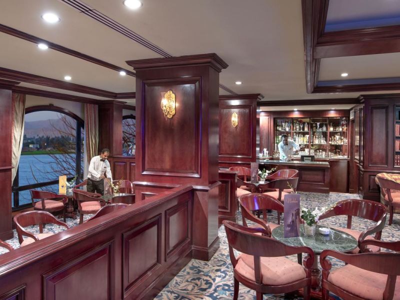 An authentic english lounge with premier views of the Nile from large picture windows situated on the 1st floor mezzanine level where an abundance of natural daylight enhances the black American walnut wood. The Nobles lounge offers a wide range of assorted cocktails, an excellent selection of wines and nightly DJ performances that add to the cozy ambience.